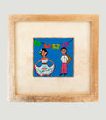 Wedding couple in blue with papel picado garland and Maria Luisa mat. 7"x 7" framed.