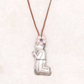 Sterling silver prayer milagro signifies a gesture of gratitude for an answered prayer or miracle received. Milagro means miracle in Spanish. Natural pink mother of pearl flower and turquoise detail on soft brown nylon. 26" adjustable