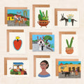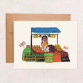 Market Girl art card 4.25 x 5.5 (A2) with kraft envelope. Printed on 100lb. cream cotton card stock with matte finish and blank interior. Original artwork by Luis Romero for River Song.