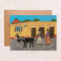 Town art card 4.25 x 5.5 (A2) with kraft envelope. Printed on 100lb. cream cotton card stock with matte finish and blank interior. Original artwork by Luis Romero for River Song.