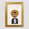 Expertly framed in Seattle, WA. in solid wood, hand finished in gilded antiqued gold- made in Italy. 1/4" visible white matte bordering the art work with 3/4" frame. Conservation Clear UV-filtering glass protects art from fading. Ready to hang with threaded wire mount. Sealed with a dust cover on the backside, artist biography included.